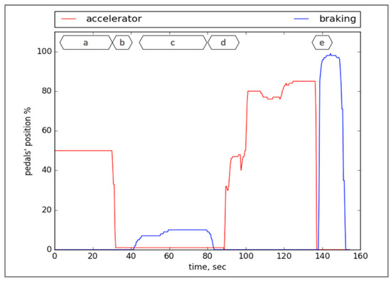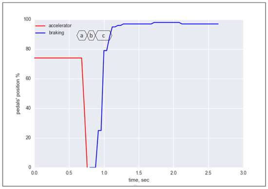 - Podusenko, A.; Nikulin, V.; Tanev, I.; Shimohara, K. Emergency Braking based on the Pattern of Lifting Motion of Accelerator Pedal. In Proceedings of the SICE 2017, Kanazawa, Japan, 19–22 September 2017. [Google Scholar]