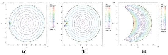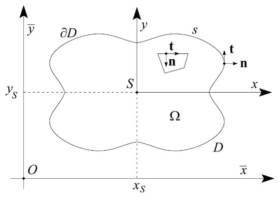 with Laplace operator in the plane of the domain D. The solution of this boundary value problem is unique up to an additive constant, and can be found in a closed form only for some simple cases (e.g., circular cross-sections, where is an exact solution and fulfills the boundary condition []). Once the problem is solved, shear stresses are determined by means of Equation (11).