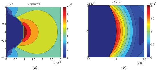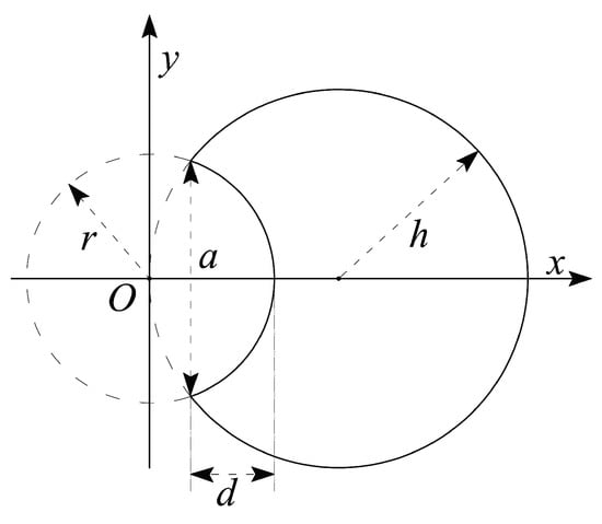 is regular inside the domain D, vanishes on the boundaries and and satisfies the problem in Equation (14) (it is Prandtl’s stress function for the torsion of a circular cross-section beam, of radius h, with a circular notch of radius r centred on its surface, see Figure 6). Considering the details shown in Figure 4, the circular shape of notches is assumed to be a first approximation fitting the real profile.