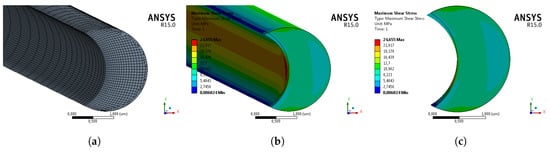 In the following sections, shear stresses is determined from the theory of linear elasticity. Once the stress and strain tensors are defined, the semi-inverse method of Saint-Venant [,,] is applied by setting [,,,,]