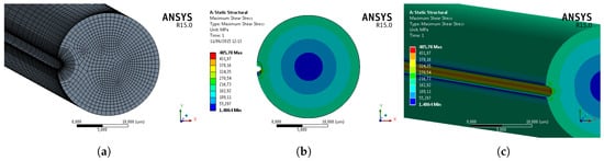 In the following paragraphs, the elementary beam theory is applied to the case of a circular cross-section shaft with a circular shaped notch undergoing pure torsion. Stresses are computed by using the analytical solution of the equations shown in Section 5. Then, two more methods, both having numerical nature, are used to compare their results with the analytical solutions: finite differences and finite elements.