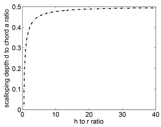 By using Equations (25), it is possible to evaluate the ratio of the scalloping dept d to chord a as a function of (see Figure 17).