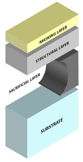 MEMS manufacturing and production, for this kind of devices, usually employs a standard Silicon-on-Insulator (SOI) stack. For this work, an unconventional material stack is designed, as sketched in Figure 9.