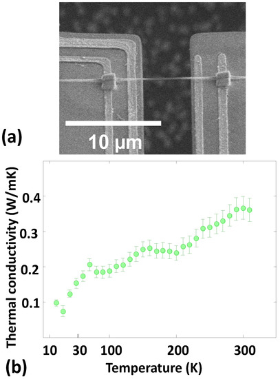 - Li, D.; Wu, Y.; Kim, P.; Shi, L.; Yang, P.; Majumdar, A. Thermal conductivity of individual silicon nanowires. Appl. Phys. Lett. 2003, 83, 2934–2936. [Google Scholar] [CrossRef]