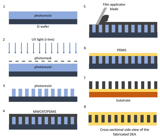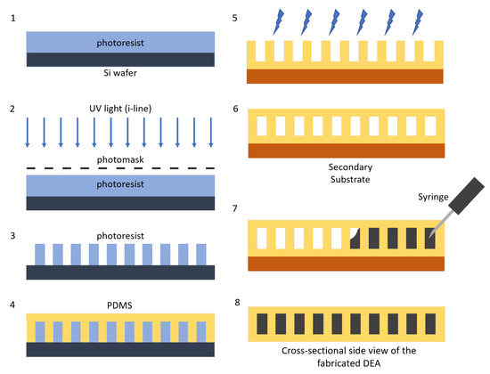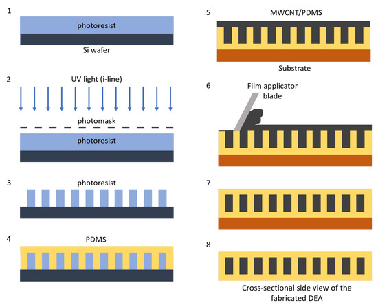 - Balakrisnan, B.; Smela, E. Challenges in the Microfabrication of Dielectric Elastomer Actuators. Electroact. Polym. Actuators Devices 2010, 7642. [Google Scholar] [CrossRef]