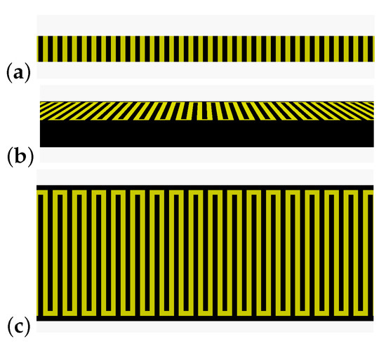 Once the proposed structure proved feasible for fabrication of “macro-scale” multi-layer DEAs, a “micro-scale” stacked DEA structure and a novel fabrication process were designed that incorporated of soft lithography tools. The biomimetically inspired stacked actuator consisted of interdigitated conductive layers, isolated with the dielectric PDMS, as shown in Figure 5. A photomask with 20 m thick interdigitated lines and electrode connections for the voltage input was designed.