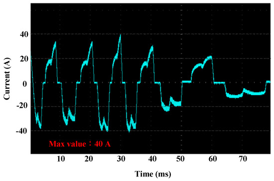 Figure 12 shows braking current of the active regenerative braking control system, where the peak current reaches 40 A, which significantly increases while compared with the non-active regenerative braking methods.