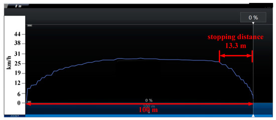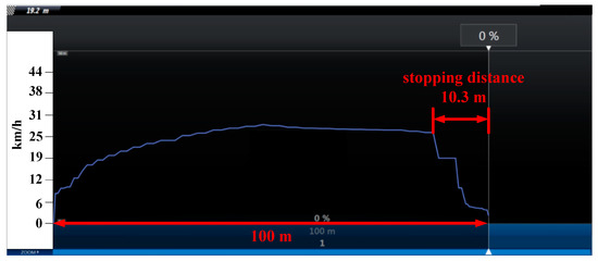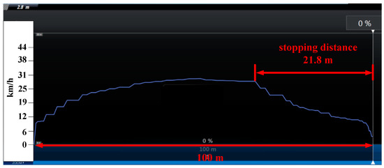 For the kinetic braking mode, the stopping distance was 21.8 m shown as in Figure 13.