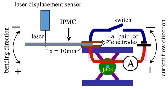 - Uchida, M.; Taya, M. Solid polymer electrolyte actuator using electrode reaction. Polymer 2001, 41, 9281–9285. [Google Scholar] [CrossRef]