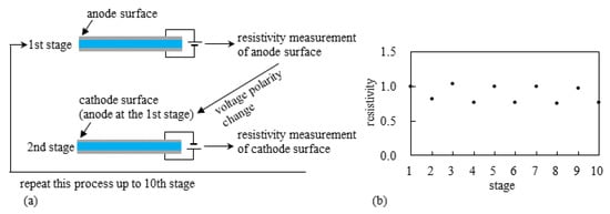 Figure 12. (a) The procedure of resistivity measurement; (b) Typical resistivity behavior of L-Naf, where the resistivity data is normalized by the resistivity of 1st stage.