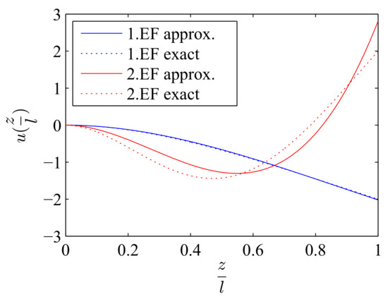 Comparison of the exact and approximated Eigenmodes of a semibeam bending.