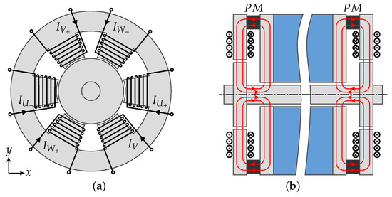 - Hofer, M.; Wimmer, D.; Schrödl, M. Analysis of a Current Biased Eight-Pole Radial Active Magnetic Bearing Regarding Self-Sensing. In Proceedings of the 16th International Symposium on Magnetic Bearings (ISMB16), Beijing, China, 13–17 August 2018. [Google Scholar]