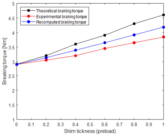 Comparison between theoretical, experimental, and recomputed braking torque.