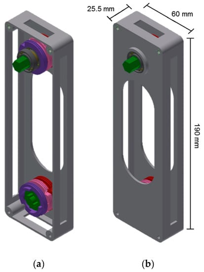 CAD design of the SMA rotation actuator with (a) opened housing and (b) closed housing [13].