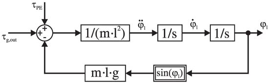 where m is the mass of the dumbbell disk, l is the distance of the mass from the rotation axis, and g is the gravitational constant. The load position is determined by double integration of Equation (8). The passive load is represented in Figure 5 in the form of a block diagram.