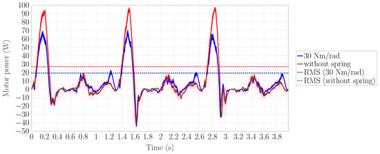 Motor power of the rigid actuator and PEA with 30Nm/rad spring (Eq. Position 20).