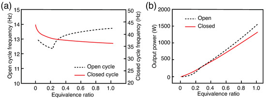 Performance metrics of the reference actuator in open and closed operating cycles: (a) Operating frequency and (b) Power output.
