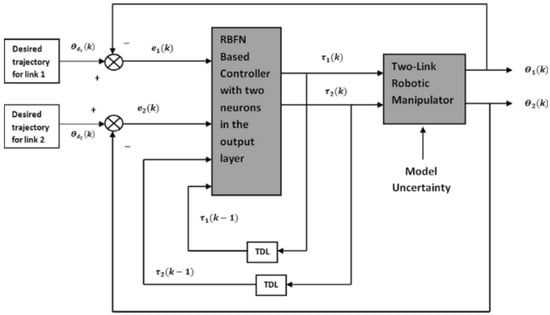 RBFN-based control configuration for trajectory control of two-link robotic manipulator [] (Copyright 2016, Springer Nature).