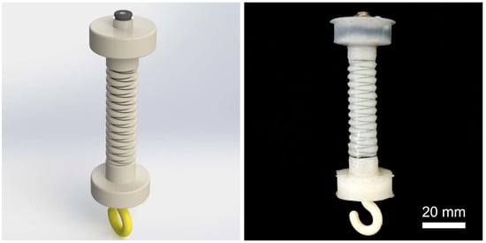 CAD model (Left) compared to prototype of a reverse pneumatic artificial muscle (rPAM) [] (Open Access).