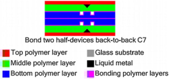 The construction stack of liquid metal embedded elastomer curvature sensor [] (Open Access).