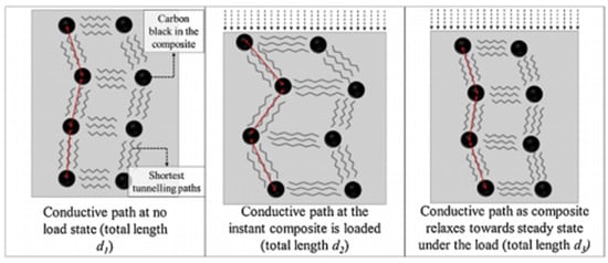 The use of carbon black suspended in silicone to construct contact sensors presents its own challenges. The foremost of these is the consistent homogeneity of the carbon-silicon blend [], which is extremely important to the reliability of the sensor. Devaraj et al. found that different carbon concentrations in the mixture yielded different sensitivities to pressure and noise, the relation of which can be observed in Figure 22. Ultimately it was found that a 10% carbon black mixture provides a noisier response, but faster and with lower hysteresis than a 5% mixture [].