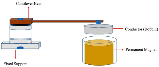 The induced EMF results in a current across the conductor (bobbin). This induced current is called an eddy current (electromagnetic damping). This induced current generates its magnetic field in the system in swirl shape around the conductor (bobbin) and opposes the motion through which it is induced. The distance between the permanent magnet housing and conductor decreases as the damping force increases; however, the electromagnetic damping force is proportional to the induced eddy current, magnetic field strength, and object speed. This implies that the faster the bobbin moves, the greater the damping will be and the slower the motion of the bobbin. As a result, the damping is lower, which results in the cantilever beam stopping smoothly.