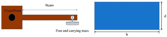 The volume was and the density of the acrylic sheet to obtain the beam mass . The lumped mass then became . Thus, the total mass with the end mass (bobbin) can be found as follows: