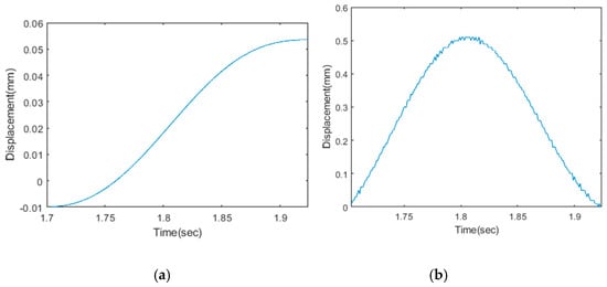 (a) Displacement according to step input and (b) instantaneous velocity according to displacement.