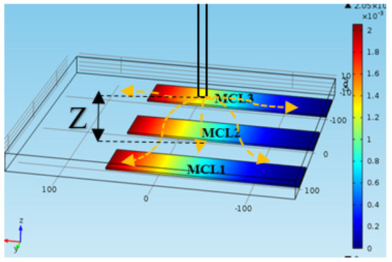 Figure 15 demonstrates why MCL1 deflects more and why MCL D senses low force compared to others. This is the reason that MLCs with L = 250 µm resulted in considerably lower force compared to MCLs with L = 400 µm because of their position. However, this force will deflect the mechanical parts, and even nanometer deflections are enough to be recognized in the capacitive sensor and other transaction mechanisms. For this reason, an electrostatic simulation is done for measuring the output capacitance when this force is applied.