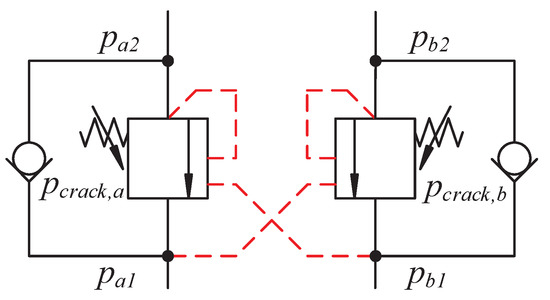 With a pressure-compensated directional valve, the control signal controls the flows and . Since the pressure compensator senses the load pressure to ensure the desired flow, the joint torques are automatically adjusted to give the desired motion. The nonlinear dynamics does not disappear, but it is compensated for in the hydraulic circuit, instead of in the controller.