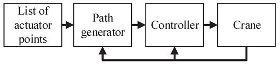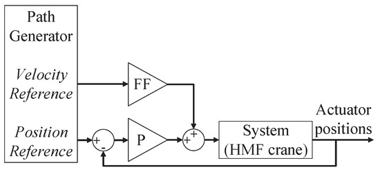 Different approaches for motion control of hydraulic cranes have previously been investigated, including vector control, feed forward control, pressure control, and force control, see [1,2,3,4,5,6]. Modeling of hydraulic cranes has been investigated in [7,8,9,10]. Point-to-point control of robots has been studied in [11,12,13].