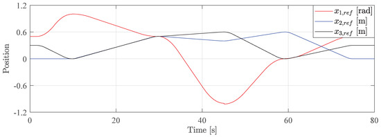 Figure 13 shows the position reference made by the path generator. The trapezoidal velocity reference gives a smooth position reference.