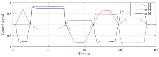 Figure 16 shows the control signal for each actuator in the laboratory test. The maximum control signal is approximately 0.8, which corresponds to the safety factor .