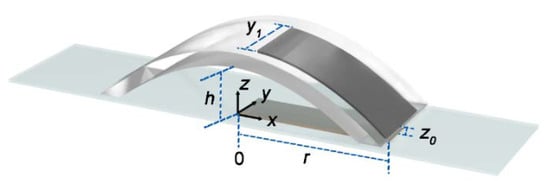 where ε0, Vd, and y1 are the electric permittivity of free space, the voltage difference, and the width of the carbon tape, respectively (Figure 6); z0 denotes a slight gap between the PET film and the lowest point in the X-shaped actuator; and h represents the polar radius. The parameters for calculation are presented in Table 1.