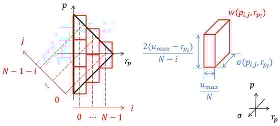 The calculation of Equation (32) amounts to the weighted summation of the distribution function over the region painted in pale green in Figure 11 in the discretized implementation of the play model. The same algebraic expression as the one given in Equation (10) can be used to determine the output while excluding the case .