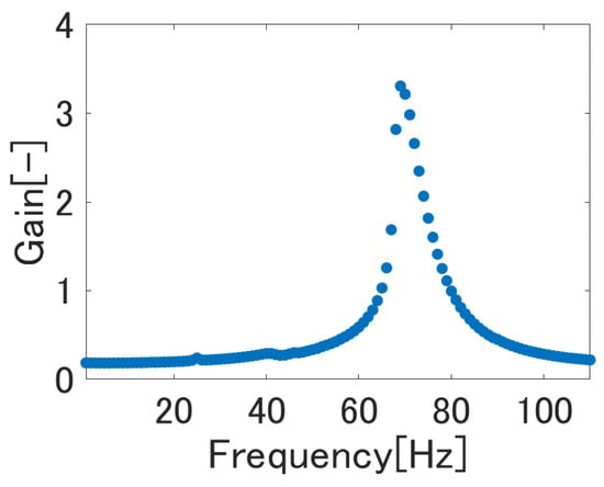 where f Hz was the frequency of the signal, ms was a sampling interval of the measurement, and k denoted the sampling number. We altered f from 1 to 110 Hz with 1 Hz increments. We measured the response of the actuator for 100 s for a single frequency, and calculated the parameters of the proposed model in Equation (34)