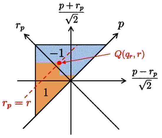 Let a point Q depicted in Figure 10 be the positive-negative boundary of the magnetization along with a line in plane. Then the relay operator takes the distributed values, as specified by