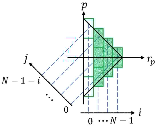 where i and j are the indices shown in the figure and N is the number of divisions of these variables. We used throughout the study. Let a vector defined by
