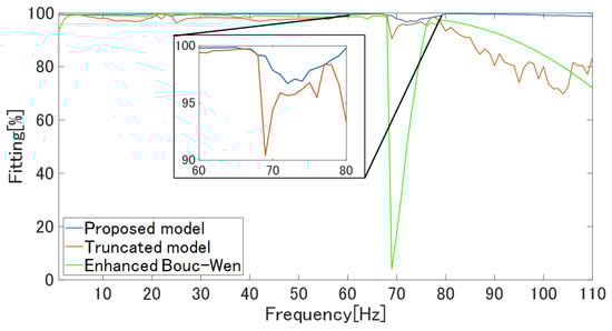 to evaluate the fitting accuracy of the proposed model. We have also identified the enhanced Bouc–Wen model that we previously proposed [13] and the truncated version of our proposed model in Equation (34) in which the term is removed for comparison.