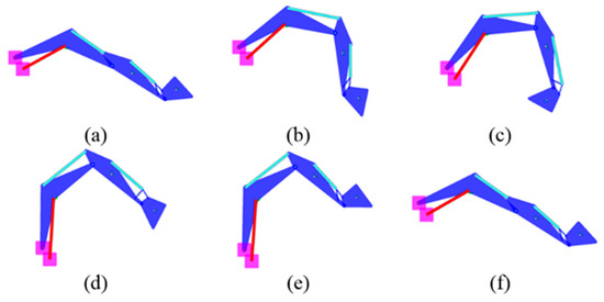 (a–f) Operation sequence of the front implement during digging cycle.
