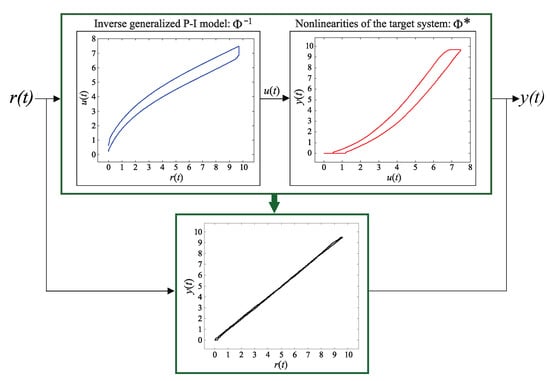 Illustration of nonlinearity compensation by an inverse hysteresis model.