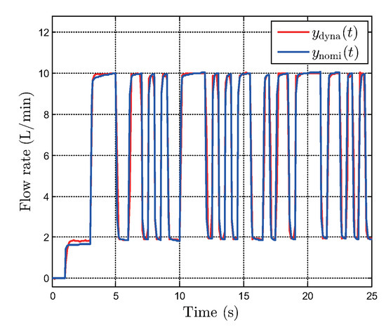 To experimentally validate the nominal model , we applied a sinusoidal signal to the EHVS combined with the inverse hysteresis model for at sampling interval . Figure 10 shows the experimental validation results comparing the measured output and output of the nominal model with the parameters in . We adopt this model to design the feedback controller detailed in Section 4.