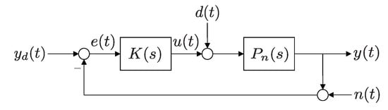 Note that is the desired trajectory, is the error signal, is the control signal, is the controlled output, is the disturbance input, and is the sensor noise. In Figure 11, denotes the PID controller designed as follows: