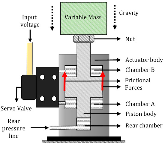Furthermore, despite the wide use of electro-hydraulic actuators across domains, and despite of the advantages they offer over other kinds of actuators, the static and dynamic characteristics of these electro-hydraulic systems are nonlinear, and understanding and characterizing these nonlinearities are essential to enable effective use and control of the actuators. Typical nonlinearities arise due to electrical hysteresis in the torque motor of the servo valve [1,2,21,22,23], due to dead-band related nonlinearities in the servo valve [1,2,21,24,25,26], due to pressure drops on account of leakages in actuator-servo valve assembly [1,2,23,24,27,28,29,30,31], due to friction present in the piston-cylinder arrangement [1,2,23,25,26,27,28,29,32,33,34,35,36], and due to variations in the operating fluid temperature [2,25,37].