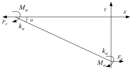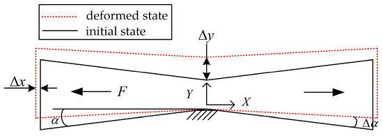 The hourglass displacement amplification mechanism is a symmetrical structure and an elastic plate hinge model can be taken out for force analysis. The force model is shown in Figure 6.