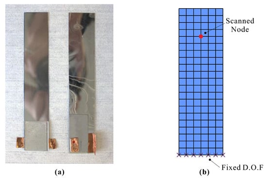 (a) Rectangular sample of PET/PVDF-TrFE used in the estimation of the piezoelectric constant . (b) Finite Element model of the cantilever plate.