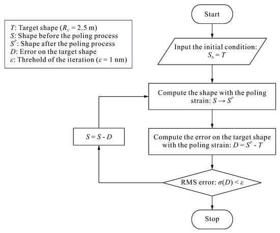 Flowchart of the iteration algorithm for solving the inverse problem to reconstruct the initial shape before poling.