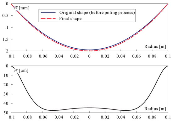 (Top): Original shape before poling and final shape. (Bottom): Shape deformation due to the poling strain.