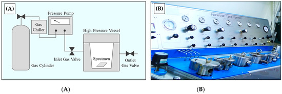 (A) Schematic diagram of the microcellular foaming process in the batch process; (B) microcellular foam batch process equipment used in this study.