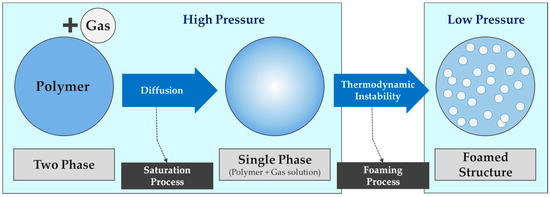 Schematic diagram of theoretical principle of the microcellular foaming process.